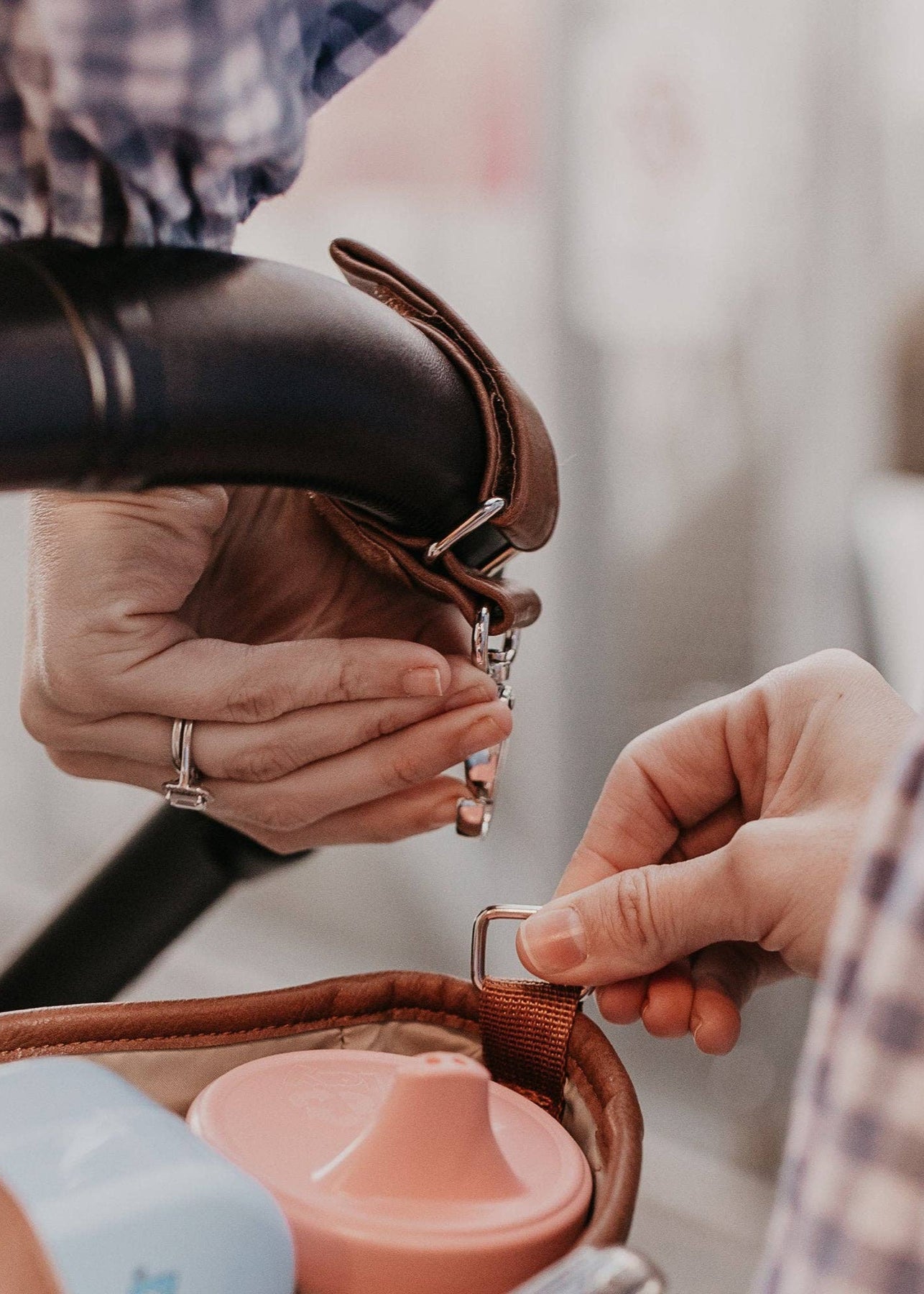 Keep your essentials organized and in easy reach with the OiOi Signature Shoulder Bag/Stroller Caddy. The spacious interior features removable dividers, so you can customize the layout to suit any stage of parenthood. With adjustable pram straps and a detachable shoulder strap, it seamlessly converts into a chic mini diaper shoulder bag for life on the go.