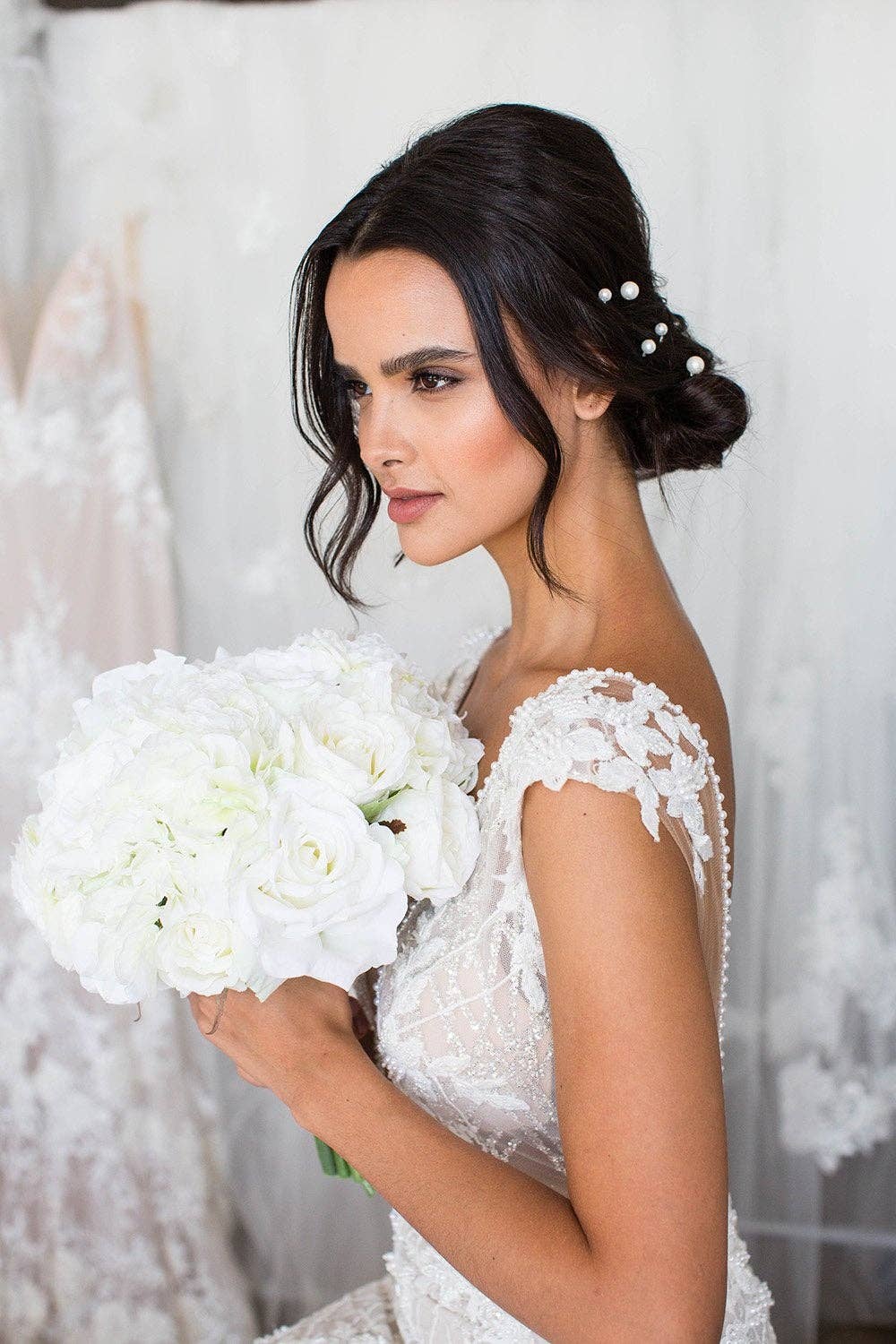 IVA PIN SET OF 5 - STYLE 2464 Delicate faux pearl hairpins. * Available in 14 K Gold and Classic Silver * Hand-wired faux pearls * Can be worn in any position on the head to delicately adorn any hairstyle * Sold as a set of five pins. * Item ships in signature keepsake packaging